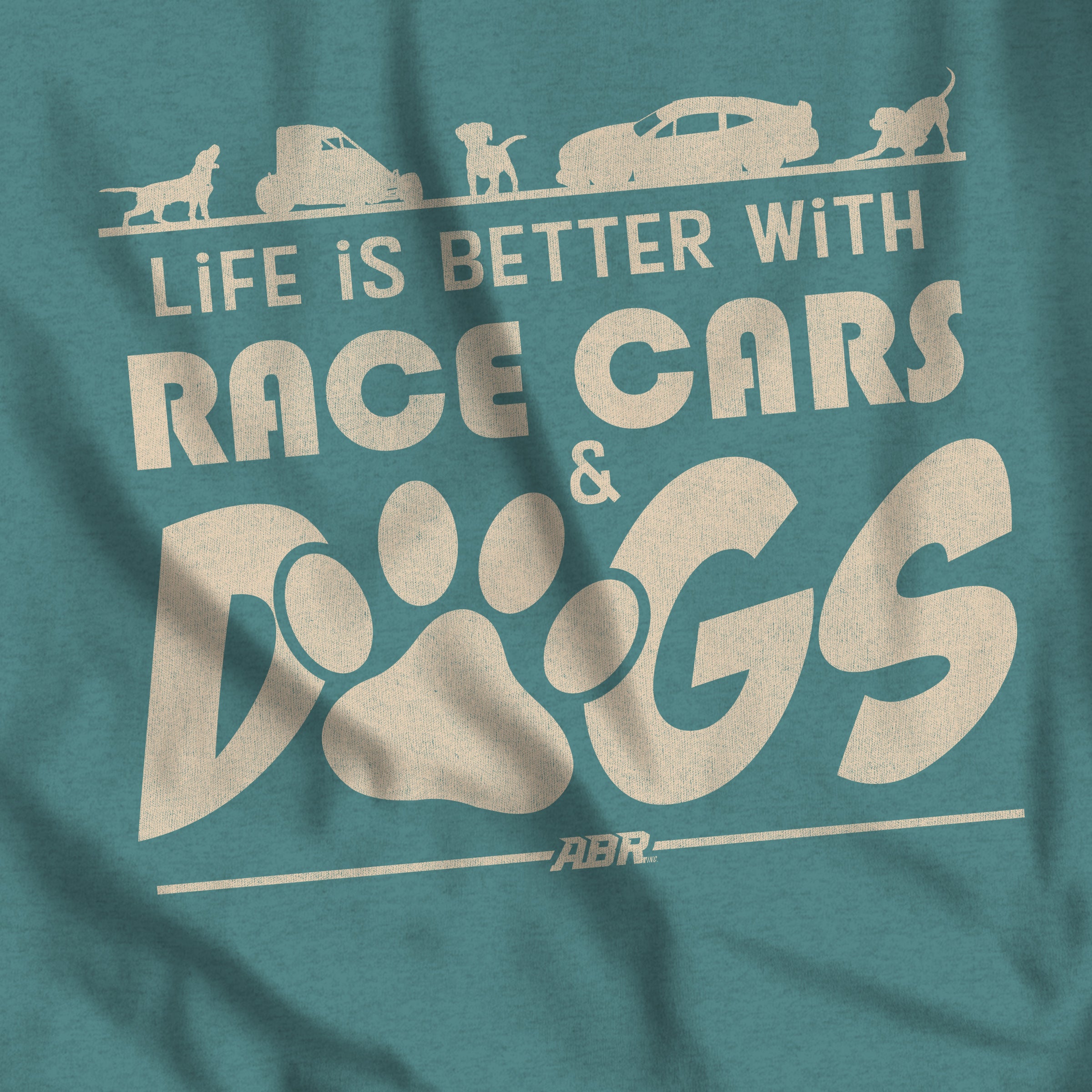 New Emerald color with a slightly updated design (new cars) of one of our most popular shirts, Race Cars & Dogs.
